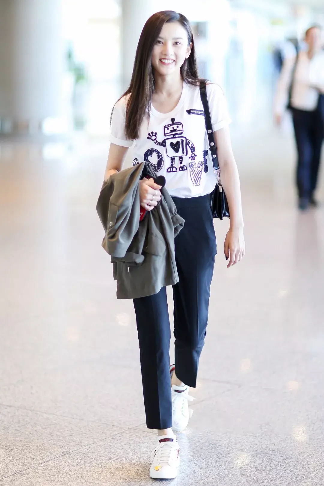 用烟管裤来搭配T恤就游走于休闲与正式之间,任由场合的变化来回切换。如果说需要显瘦的话,那么一身深色搭起来就更加显瘦显高,用小白鞋来点亮一下,就更加轻盈而不压个子。