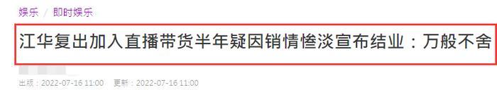 7月16号,据港媒消息称,江华的直播事业迎来打击,因为销量惨淡,他之前在平台上所开设的店铺已经消失。