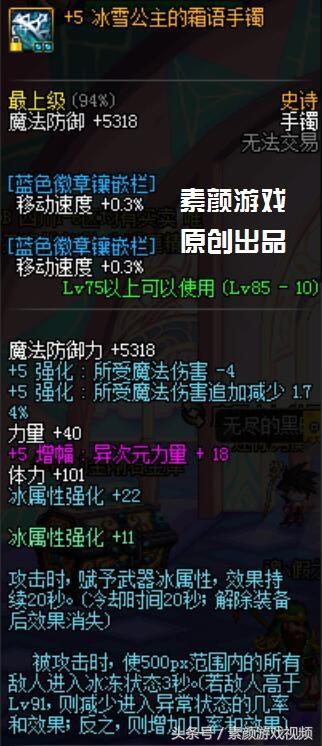 手镯:冰强+22,赋予武器冰属性攻击;被攻击时有几率使敌人进入冰冻状态