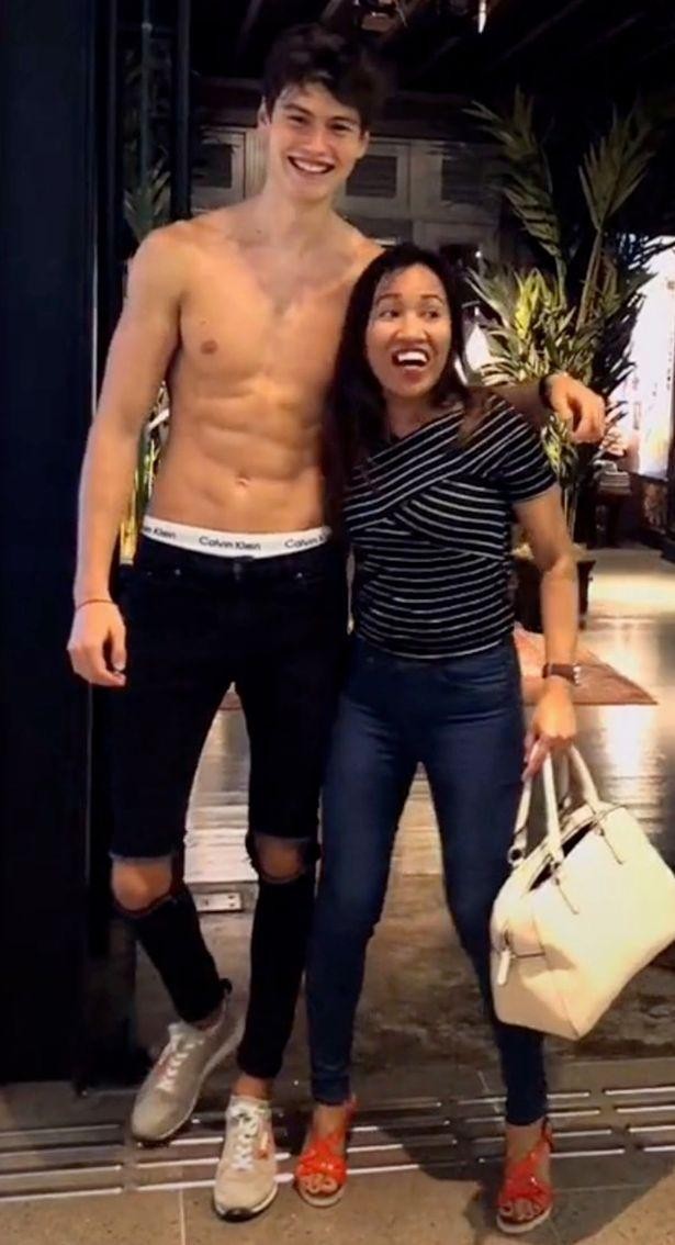 莫里茨甚至在最近视频中分享了自己穿着红色泳裤站在Hollister前的照片,清晰结实的肌肉线条美得令人窒息。