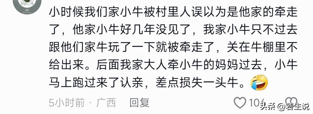 小时候家里丢过牛,用的就是让牛妈妈认亲的方式,这才把小牛领回家,避免了损失。