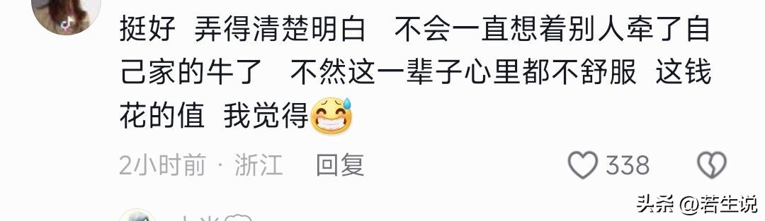 不过也有网友觉得,钱虽然花了,但是至少彻底解除了误会,总比说不清楚猜忌一辈子强,这也得感谢现在的DNA鉴定。