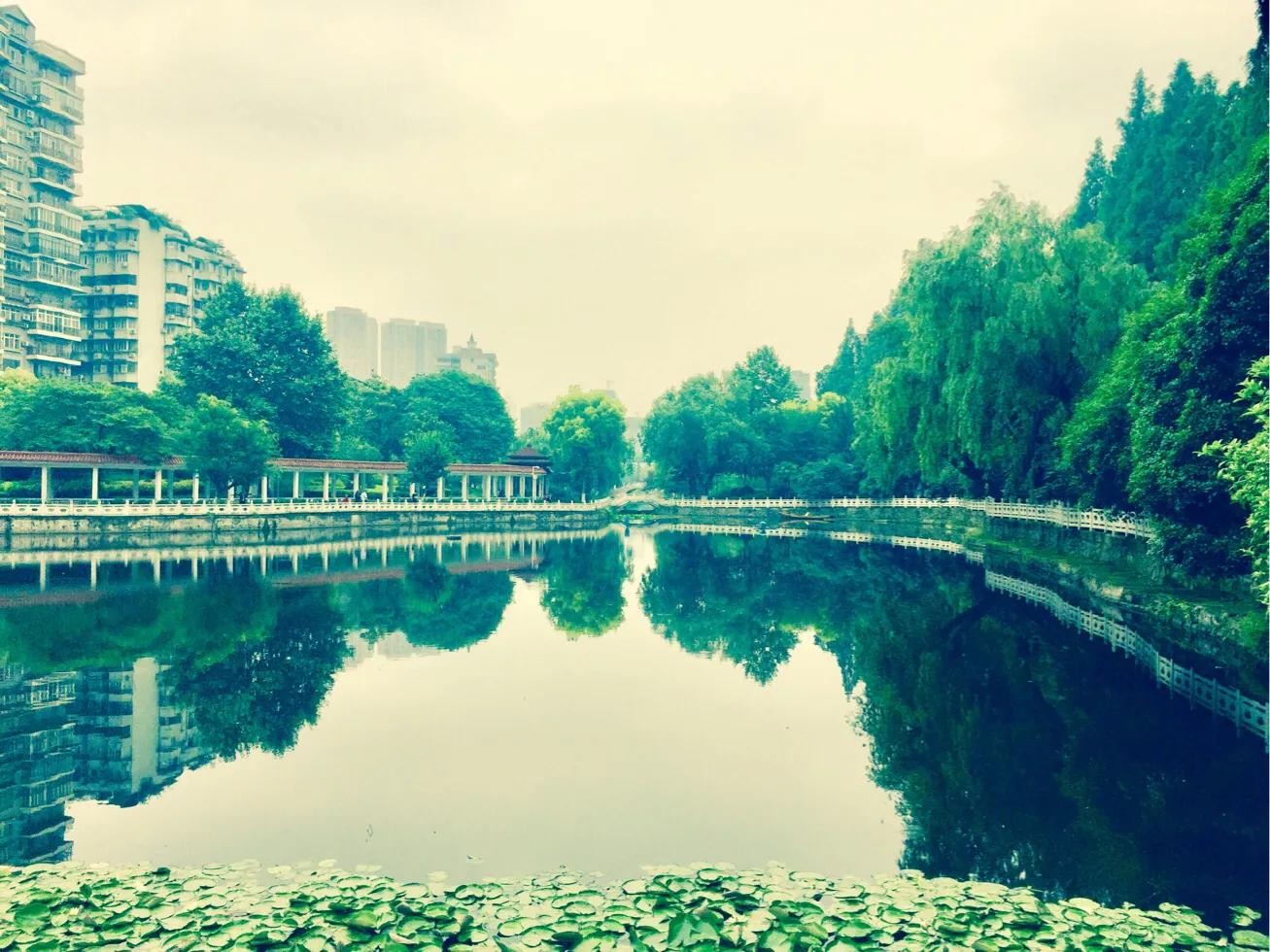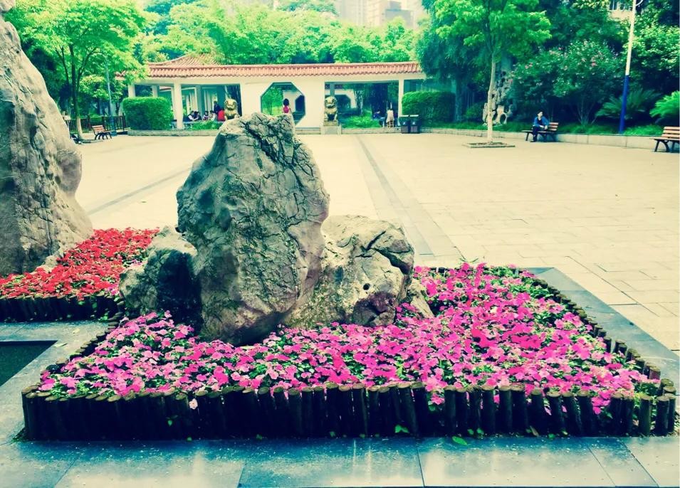 公园虽小,但桥、亭、廊、道、花、荷、树、径却一应俱全,绿色植物尤为丰富,乃闹市中一天然氧吧。