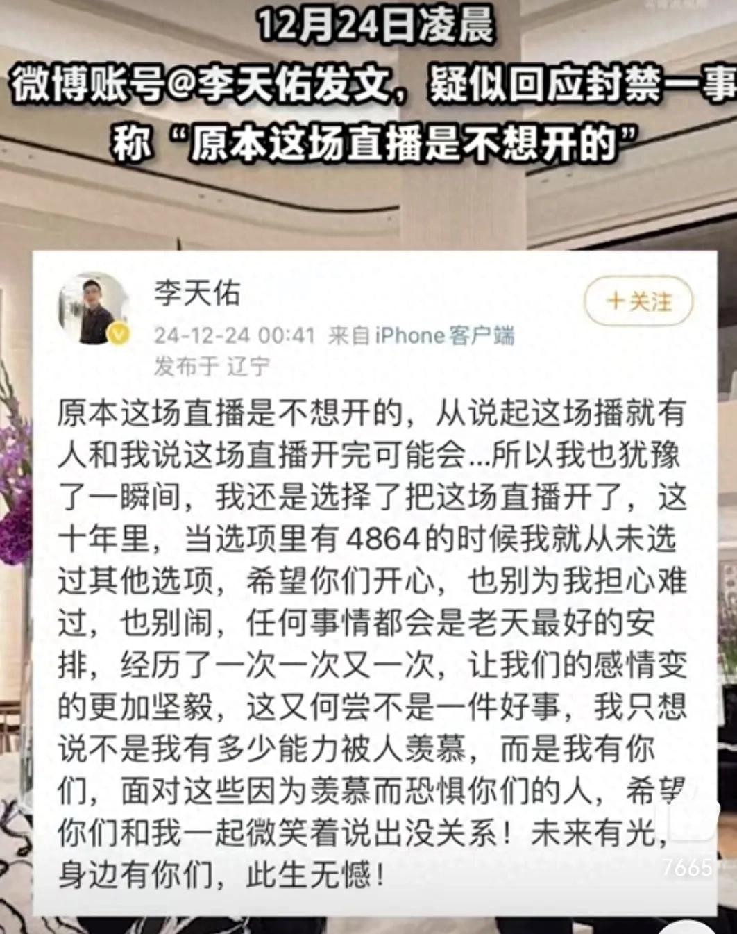 面对再次被封的现实,“MC天佑”本人也在微博上发声回应。他表示自己本无意开启这场直播,但最终仍决定一试。这番言论引发网友热议。