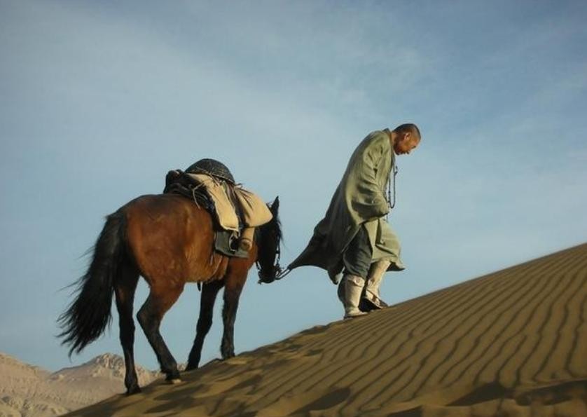 为了避开官府的追捕,他不得不选择一些偏僻的小路,昼伏夜行。在穿越莫贺延碛沙漠时,他遭遇了此行最为严峻的考验。这片沙漠古称 “流沙”,方圆八百里,黄沙漫天,水源稀缺,酷热难耐,被视为死亡之海。玄奘在沙漠中艰难前行,没几日便迷失了方向,水囊中的水也不慎打翻,瞬间被滚烫的沙子吸干。在断水的情况下,他凭借着顽强的意志,在沙漠中苦苦支撑了四天五夜,唇焦舌燥,头晕目眩,几乎陷入绝境。就在他奄奄一息之时,或许是冥冥之中有神佛庇佑,突然一阵凉风袭来,他的老马也似乎受到了感召,奋力奔跑起来,竟奇迹般地找到了一处水源。玄奘大喜过望,急忙趴在水边,大口大口地喝着水,这才捡回了一条性命。