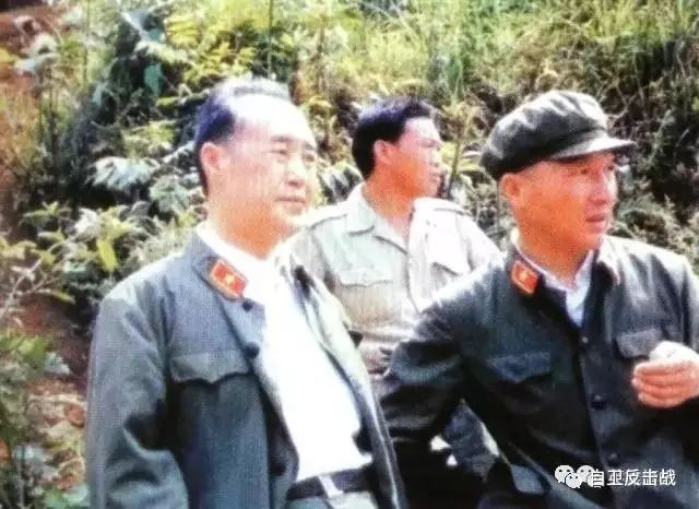 1986年6月4日钱树根(右)与时任兰州军区副司令员董占林在老山前线