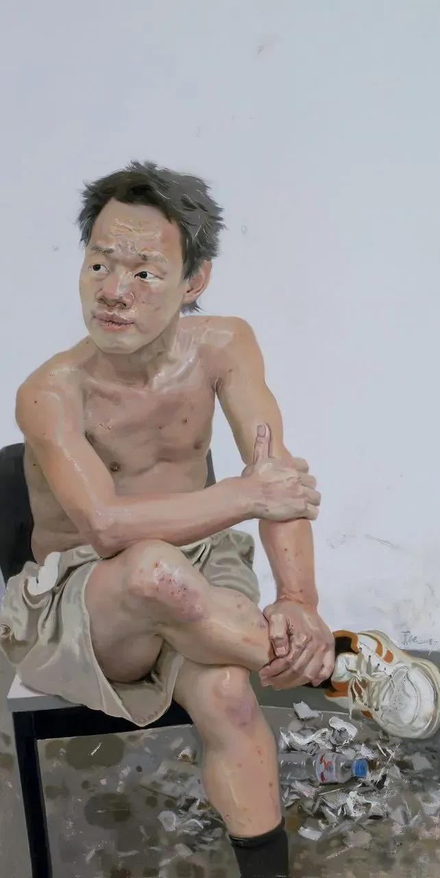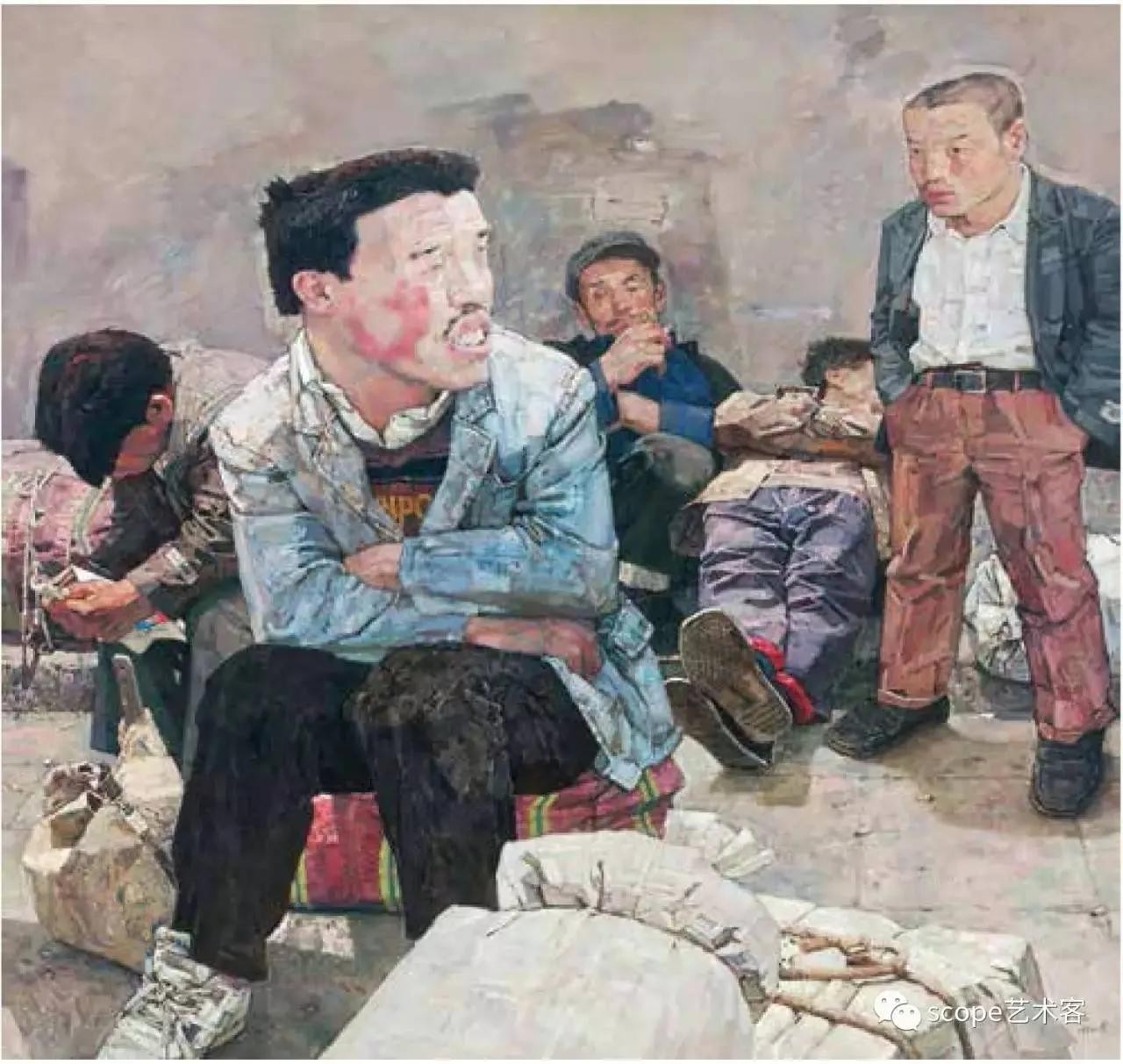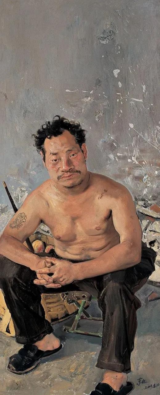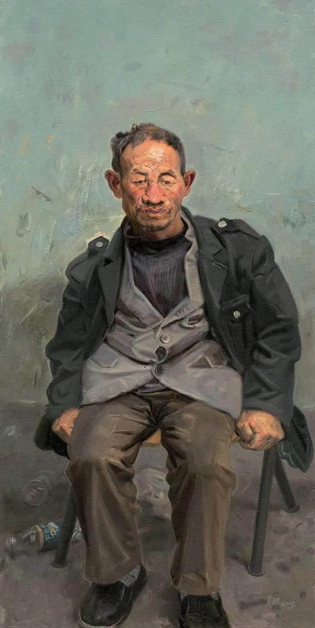 忻东旺的油画人物,特别是画面中对底层各色小人物生存状态的真实体现,让人感觉到原来还有这么多群体,他们那种真实存在生存的压力和无奈、迷茫,一种和不断发展的灯红酒绿的繁华都市和高速发展的现代文明格格不入的、还真实存在的落后……贫穷……震撼视觉、直击人心、触发泪点、拷问灵魂,体现了他作为一名优秀的画家和艺术家具有的普世价值观和对生活在最底层民众一种发自内心的关注、关心和只可意会难以言传的悲悯情怀……