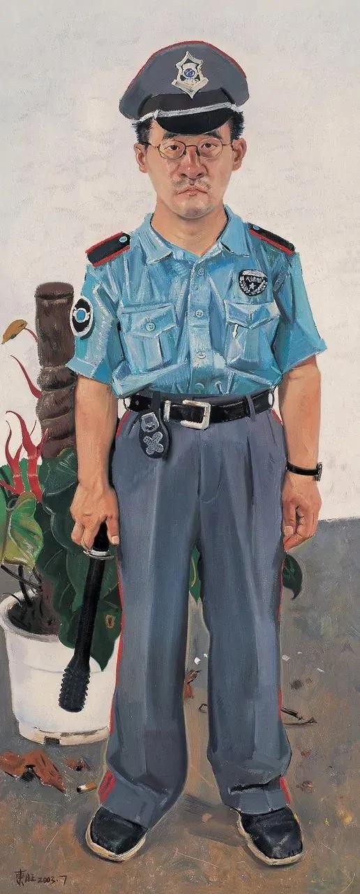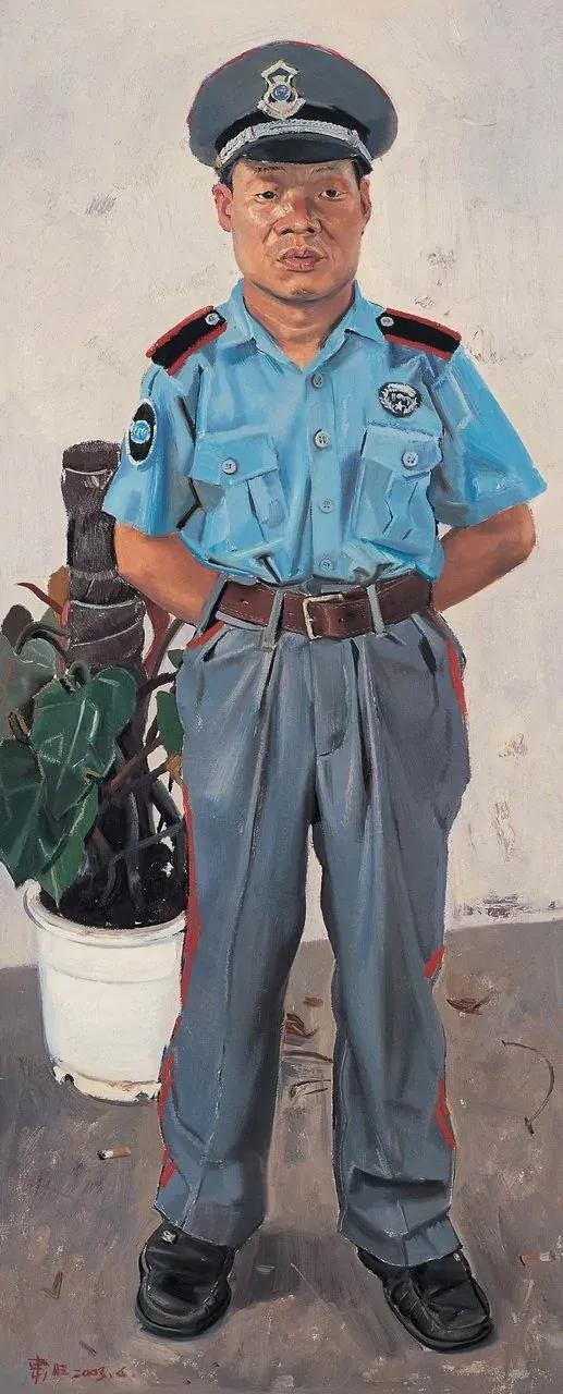 忻东旺的油画取材大多是最普通的农民、农民工、城市里最普通的保安等各色小市民,但是通过他对人物造型和表情的合理的艺术夸张,通过他对人物的形象特征、内在心理活动、外在精神面貌非常精准到位的捕捉,画面人物生动传神,具有极强的视觉震撼力!