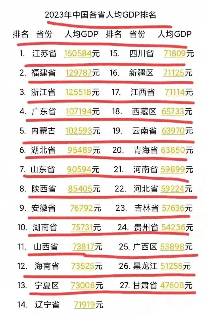 又有人把2023年中国各省人均GDP,整理出来了,还不知道的收藏