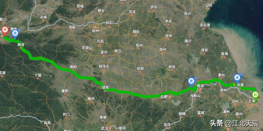 沪陕高速公路全线走向示意图