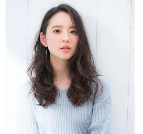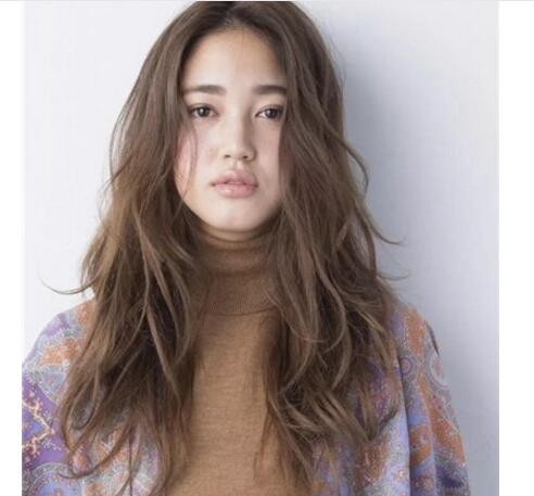脸大的女生选择的也是慵懒卷发发型,前面是好看的中分式的刘海,后面的头发是大卷发式的,这样的女生卷发发型不单能起到了很好的修脸效果,同时还很清新可人。