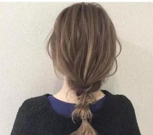 头发比较长的女生,她的头发也是有一点儿小蓬松的,她选择的是双股辫子式的马尾式的发型扎发,这样的慵懒卷发扎发扎得低一些,人看起来也很慵懒卷发发型扎发也是很适合在家里扎的。