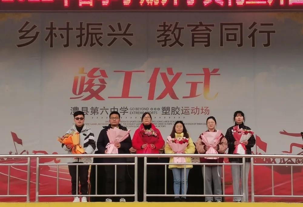 再接着,刘学副校长宣读表彰通报,优秀学生代表为2021年下学期18名最受学生欢迎的教师敬献鲜花,并合影留念。
