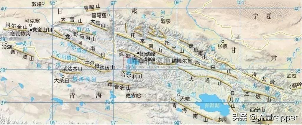 祁连山脉的地理位置有些特殊,它的北边是北山戈壁和巴丹吉林沙漠,南边有柴达姆盆地,西边是库姆塔格沙漠,东边有黄土高原。高海拔的祁连山脉与周围的低海拔地貌环境显得格格不入。