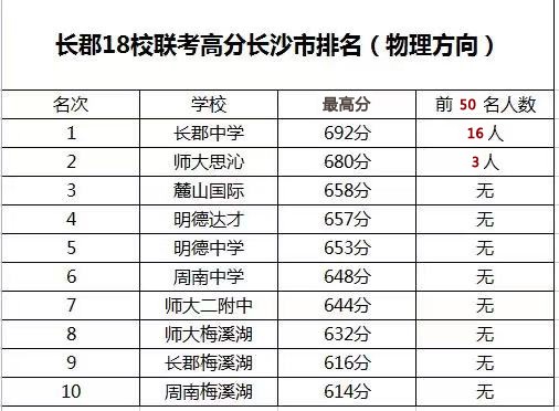 由于这次考试由长郡中学、麓山国际、衡阳市八中、永州市四中、岳阳县一中、湘潭县一中、石门县一中等顶尖选手联合出题,因此考试成绩的含金量极高。全省共70多所高中,6万余名考生参加了本次联考。