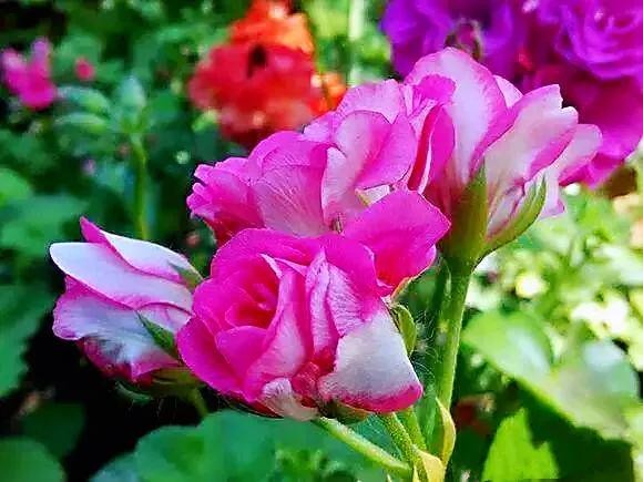 天竺葵·品种丰富,花色各异,多姿多彩,且适应性强,花期长,深受花众喜爱。适用于室内摆放,花坛布置等。