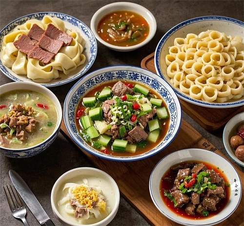 - 用专用工具压制的细圆面条,常见荞麦或高粱面版本,汤底多为羊肉或素卤。