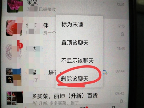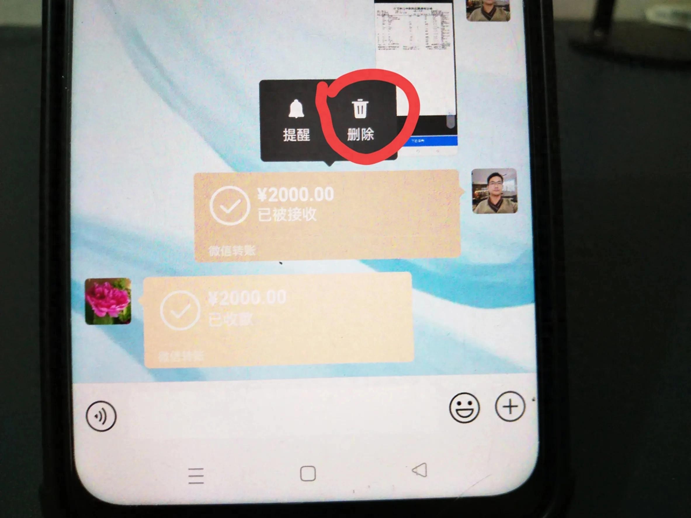 但是,如果有人已经领取了红包,这笔记录依然会存在。针对这种情况,我们只需长按聊天记录两秒,选择删除该聊天,这样支付账单就会从聊天界面中消失。(如上图所示)