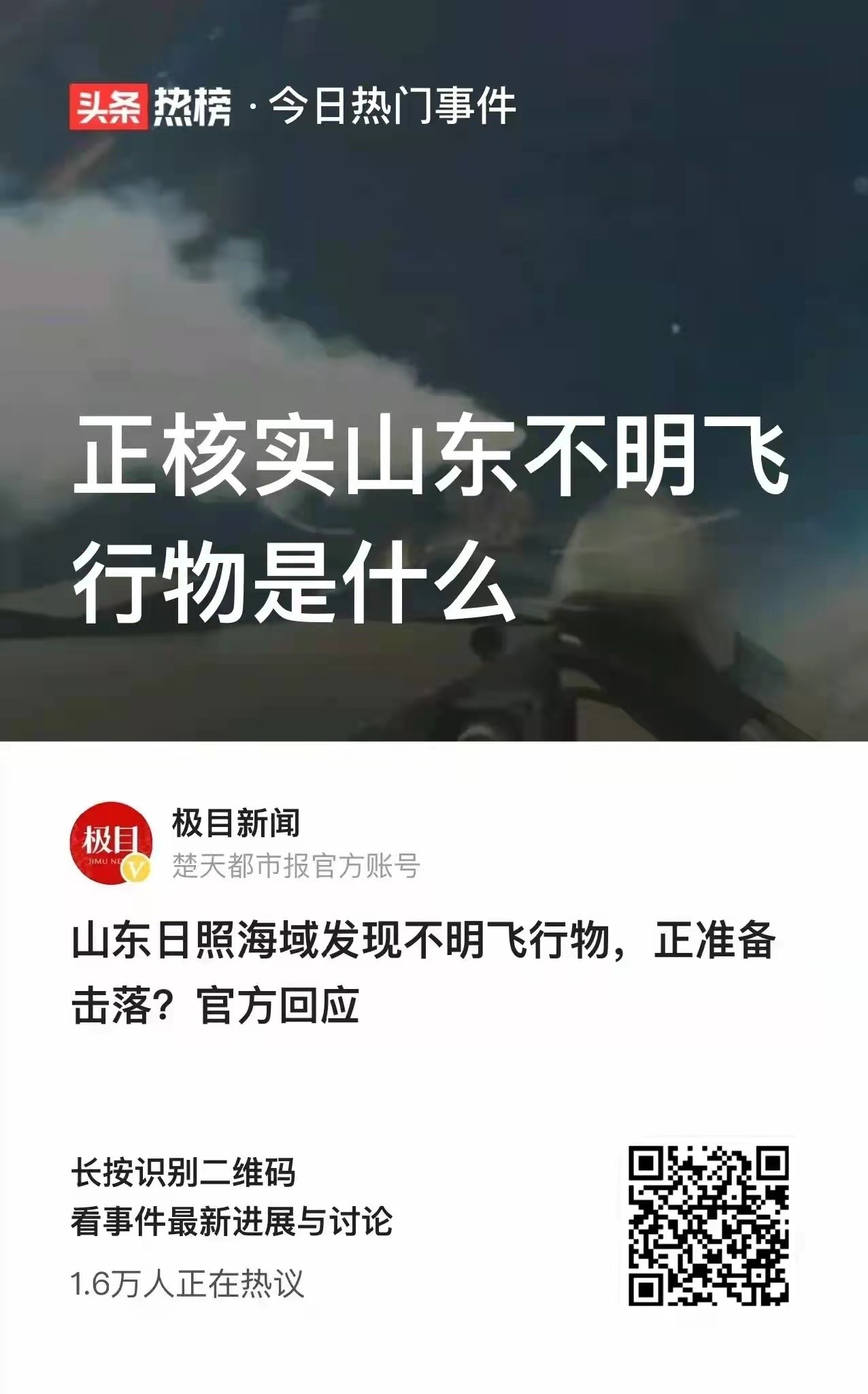 官方表示,正在核实山东不明飞行物是什么?