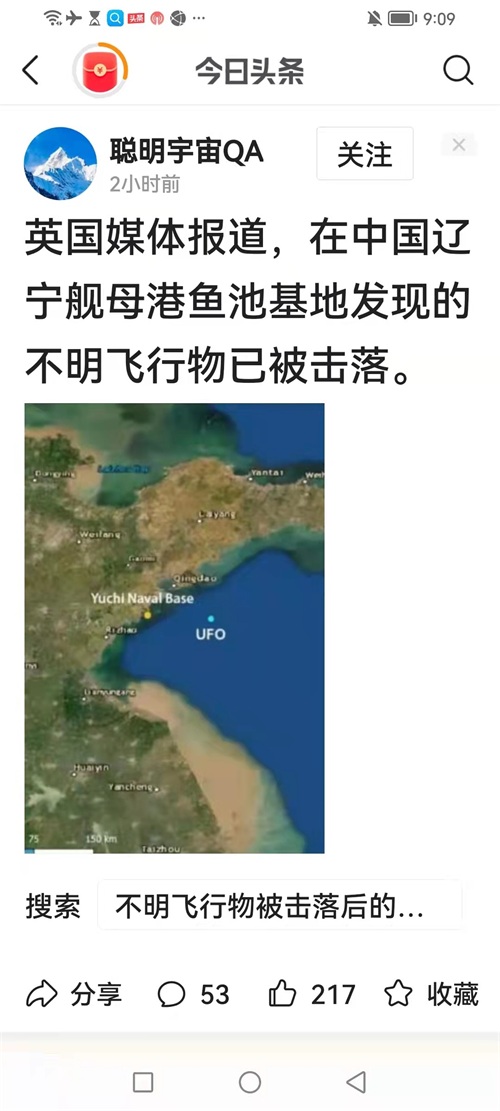 外媒称在山东不明飞行物已被击落?周边渔船密布等着立功