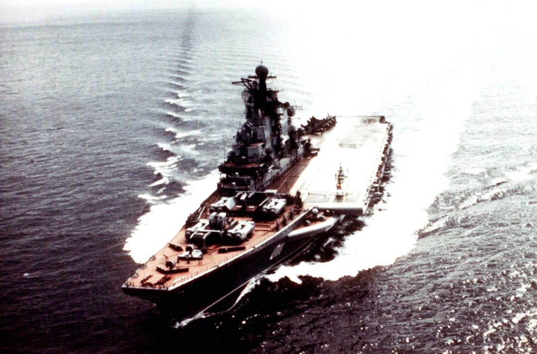 在此背景下,诞生了1143型重型载机巡洋舰,限于苏联的海军政策,苏联海军把1143型的任务定位为“航空反潜巡洋舰”。其中,明斯克号航空母舰是苏联海军1143型航空母舰的二号舰,是苏联海军发展的第二代航空母舰和第一级搭载固定翼舰载机的航空母舰,也是世界上第一级搭载垂直/短距起降战斗机的航空母舰。明斯克号航空母舰除搭载有舰载机外,还装备了具备反舰、防空、全方位反潜、强大火力打击能力的舰载武器,单舰战斗力强大。