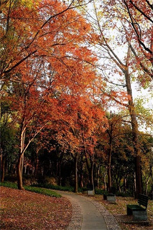 红枫抹冬妆,“枫”景伴冬来。一些熟悉的风景因为有了季节的妆点,再次变得惊艳起来。沿着红枫大道漫步,无需刻意寻找,一转弯、一抬头,便是满眼的妖娆。人在其中,似是画中人。