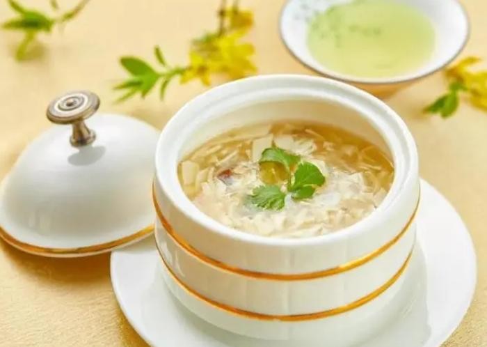 之后它还辅以鸡汤,火腿,虾仁熬制出满满的浓汤,再把干丝放入其中吸收汤汁的鲜味,然后单独摆盘呈现,就形成了这道美食。