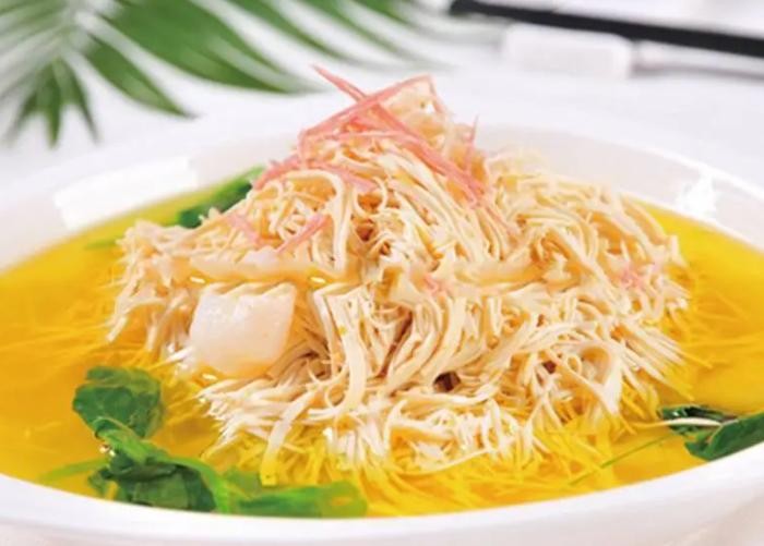 这款美食对于刀工的要求极其苛刻,豆腐切丝这道工艺相信大家应该在很多电视上看过,而这道美食就需要这样的工艺作为基础。