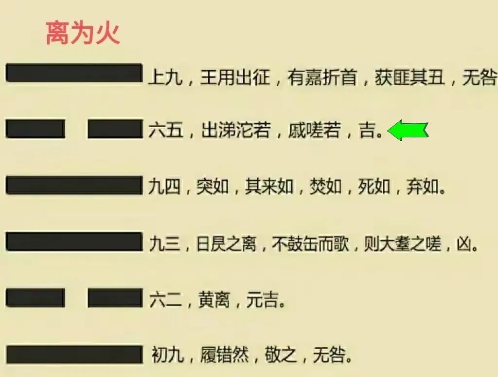 释义:又见曙光,六五爻高兴得泪流满面,感慨光阴无常,吉利。