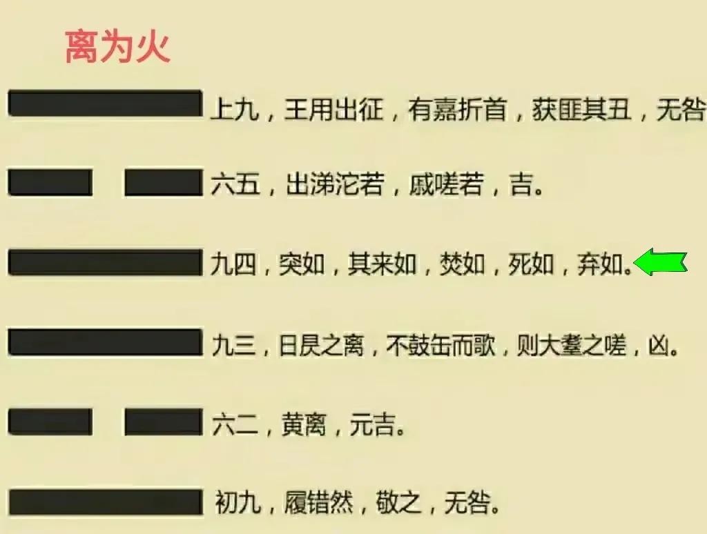 九四:突如其来如,焚如,死如,弃如。