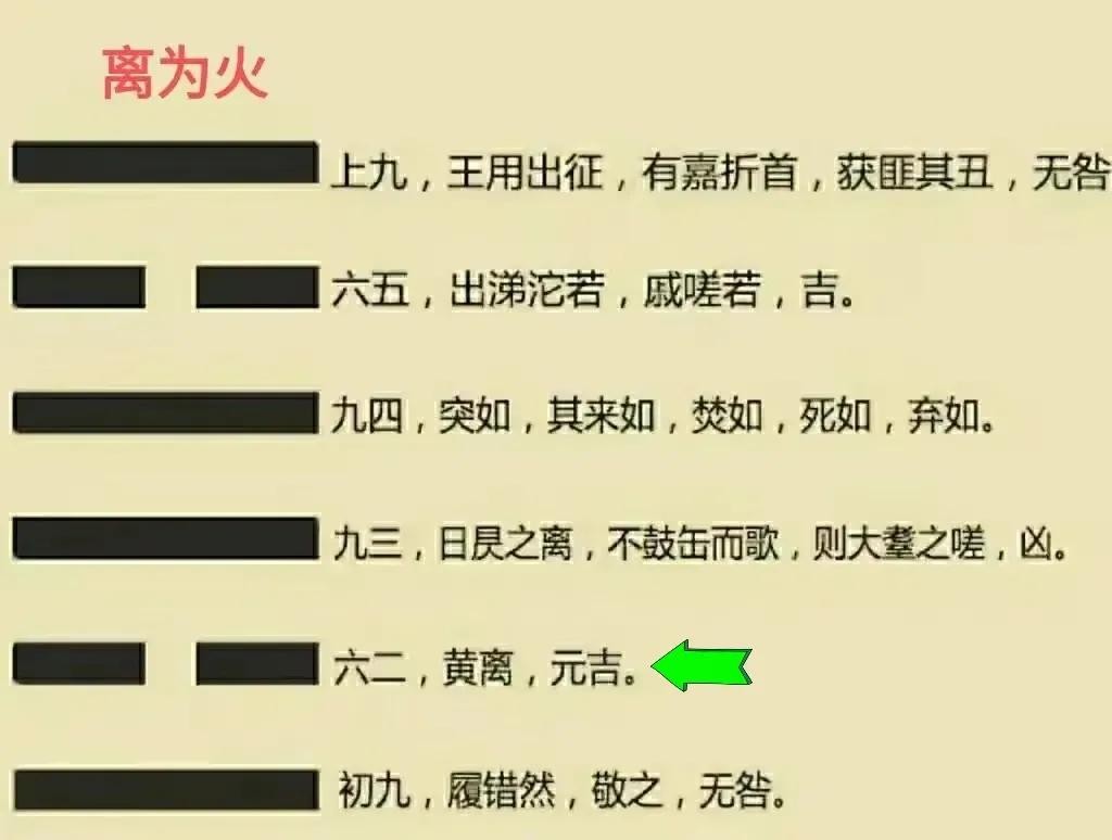 另外,黄色是坤土的特性之一,六二爻居中守正,意味着依附黄土,这也是黄离所对应的卦象。