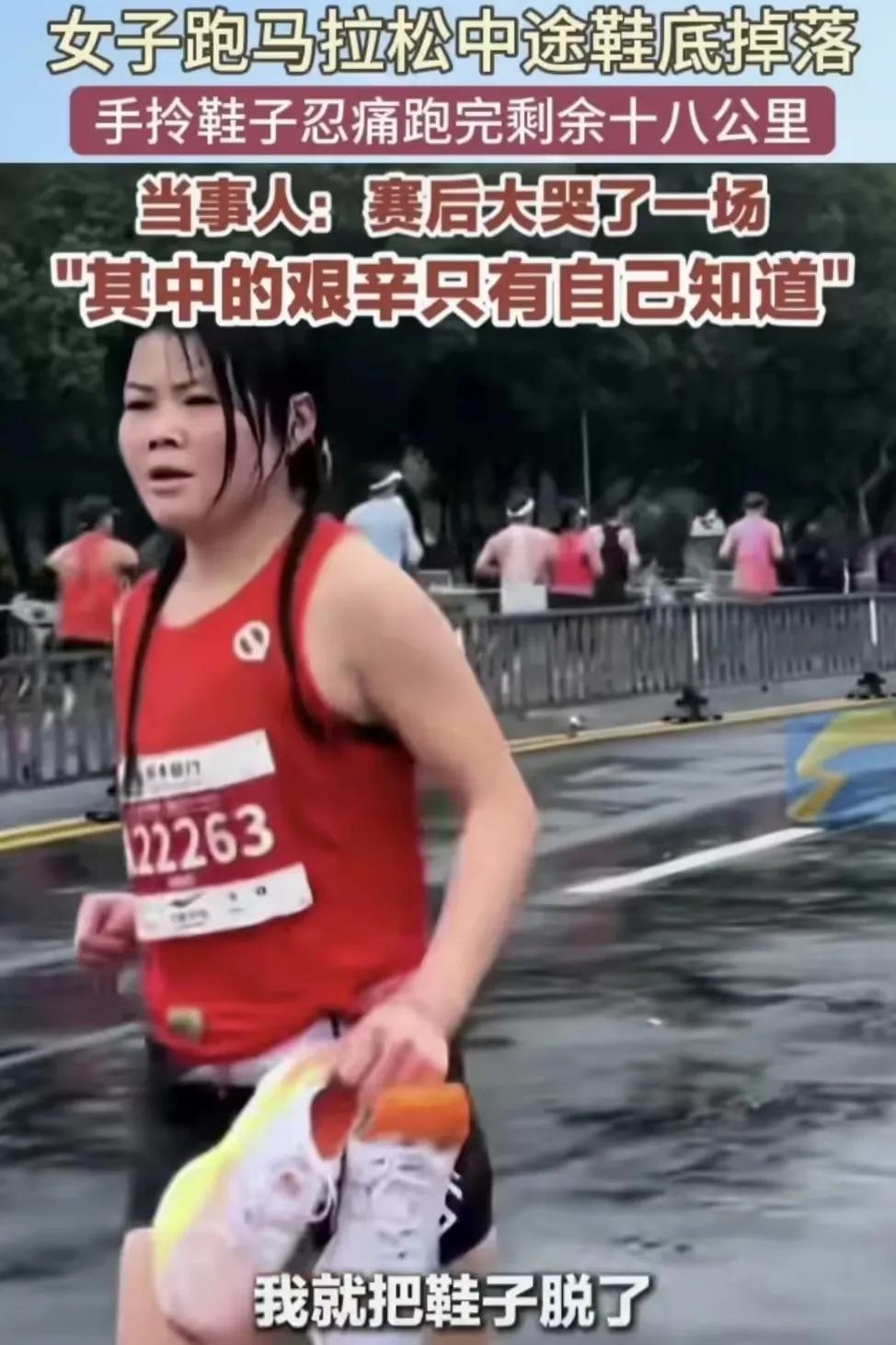 【赤脚完赛:马拉松女将的坚韧与特步鞋底的尴尬】