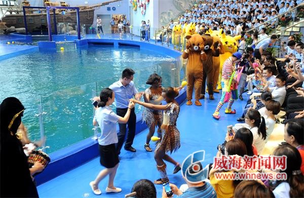 在海洋欢乐剧场举行的威高海洋公园首发礼上,各方嘉宾为海洋馆盛大开幕送上衷心祝福。随后,土著人、魔术师、卡通人偶组成的巡游队伍引燃了全场热情,来自白俄罗斯的水上芭蕾舞团以精湛的芭蕾舞技艺惊艳全场,而三只训练有素的海狮团队凭借绝对的主场优势,成为首发礼表演环节的主角。