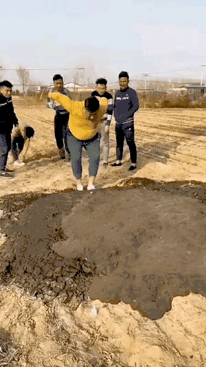 出门也不知道穿个防滑的鞋子,你看摔倒了吧,哈哈