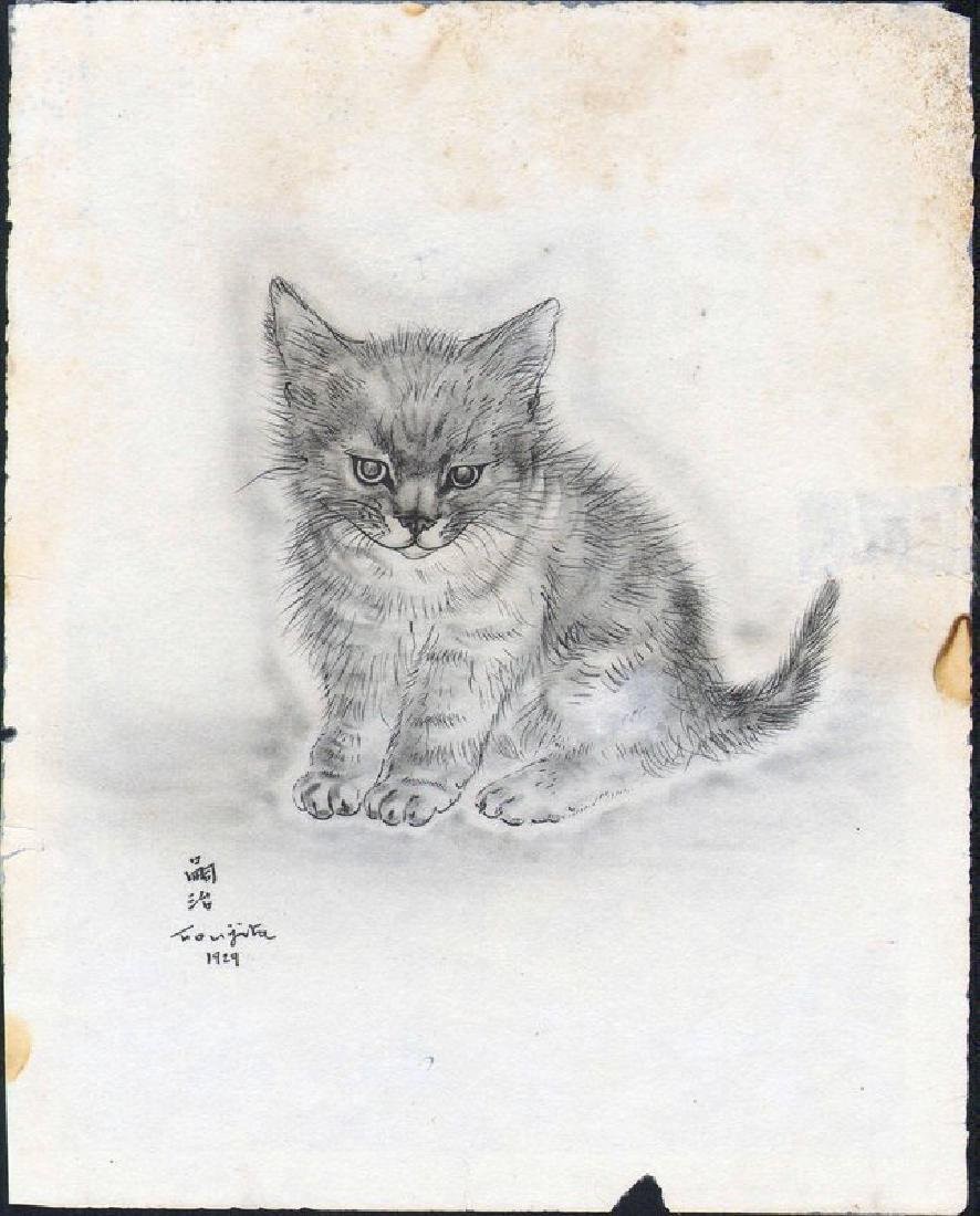 藤田嗣治的作品被法国人收藏,而且还是在法国,不是没有原因。藤田嗣治作为一个艺术家的出道,或者说在欧美出道,的确是在法国。那是在上个世纪20年代。一百多年前的1913年,藤田嗣治来到了巴黎学艺。他比徐悲鸿早了6年,后来二人也有短暂相识。和徐悲鸿不同的是,藤田嗣治已经把自己打造成了巴黎艺术家圈里的宠儿。让他成为巴黎新宠的有三件事:1他画的裸女;2他画的猫;3他自己别出心裁的装束,外加他是日本人。