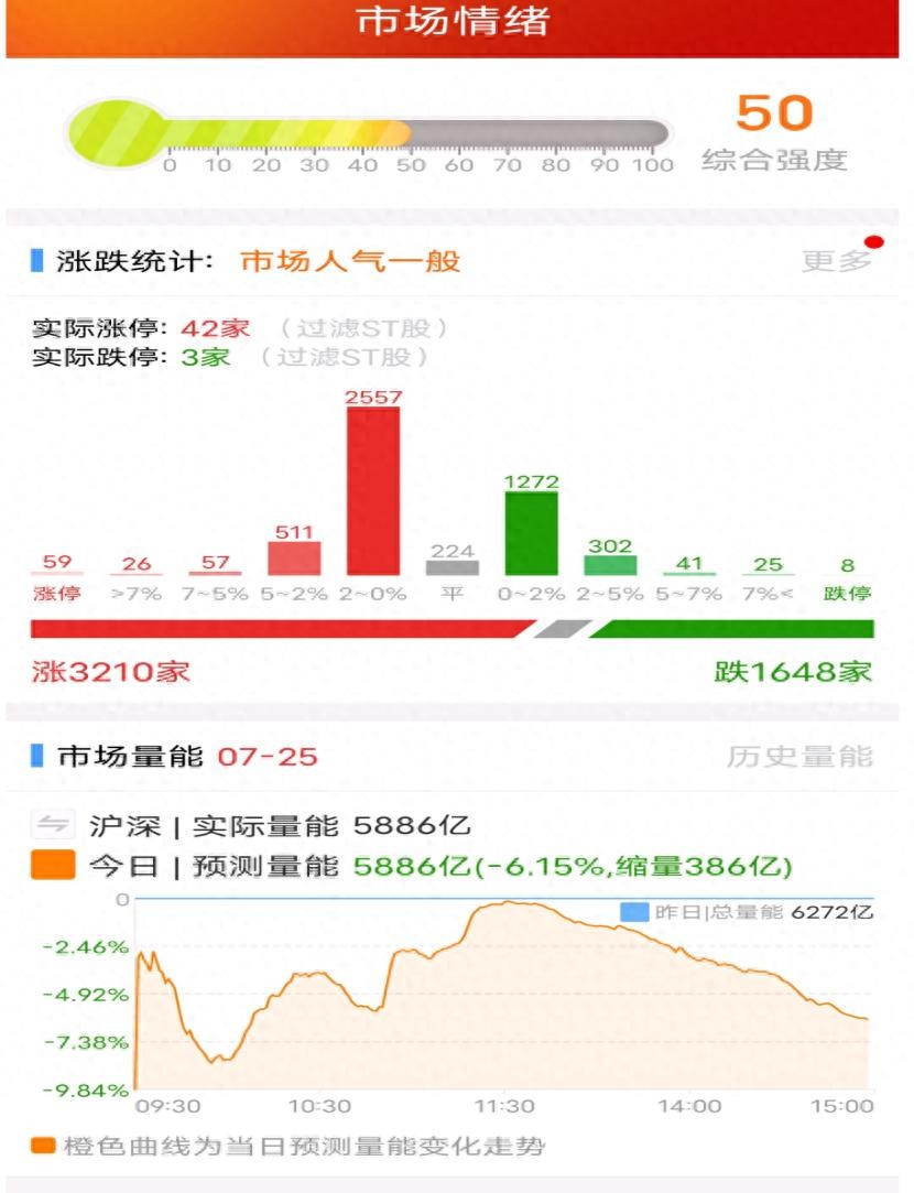 全天收盘实际量能5886亿,较昨日缩量386亿,指数下跌-0.52%,市场上涨家数3210家,下跌家数1648家,实际涨停42家,实际跌停3家,个股涨多跌少,没有新的主流题材,还是无人驾驶,真正的买点是弱反弹后再次杀跌形成二交衰竭,也就是再杀跌形成涨跌数据小冰点。