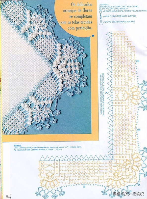 推荐多款最适合钩布结合的手工钩织蕾丝花边花样图解