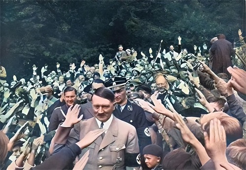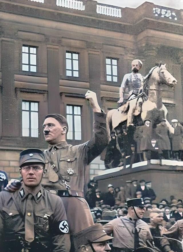 希特勒在1930年的德国已经崭露头角,得到了广泛的支持,从照片中可以看出,他的支持者涵盖了各个年龄段和性别。