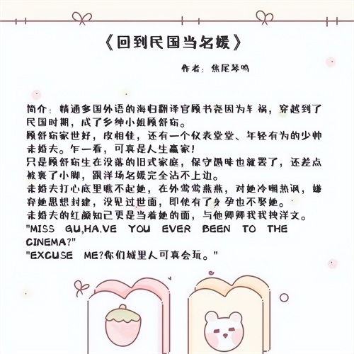 2、《回到民国当名媛》作者:焦尾琴鸣