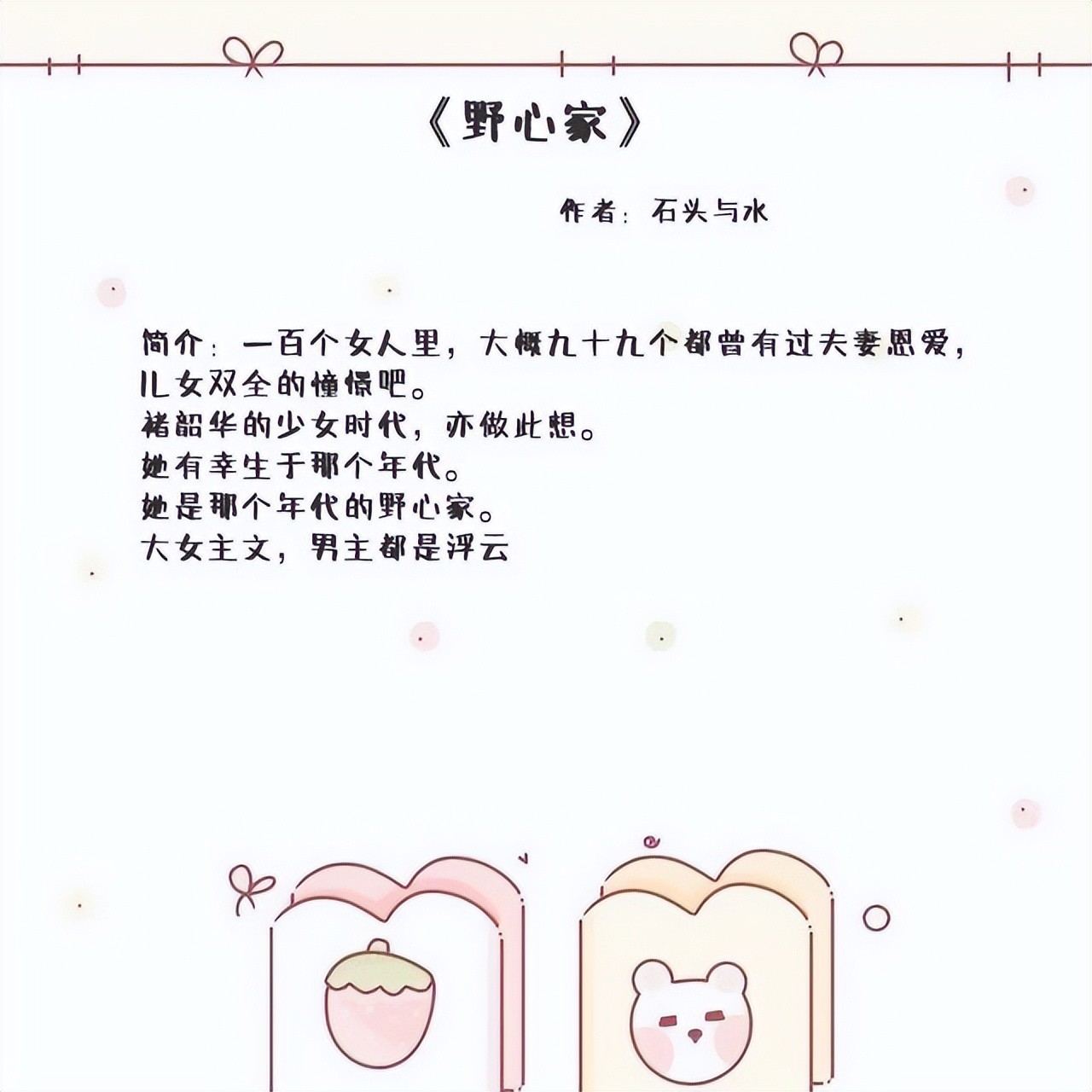 3、《野心家》作者:石头与水