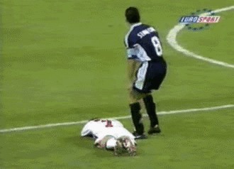 2、意大利托蒂在禁区摔倒了,点球?oh,nonono,你,托蒂过来,你假摔,想骗我帮你们打败韩国队?红牌,出去!