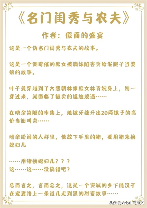 4.《名门闺秀与农夫》作者:假面的盛宴