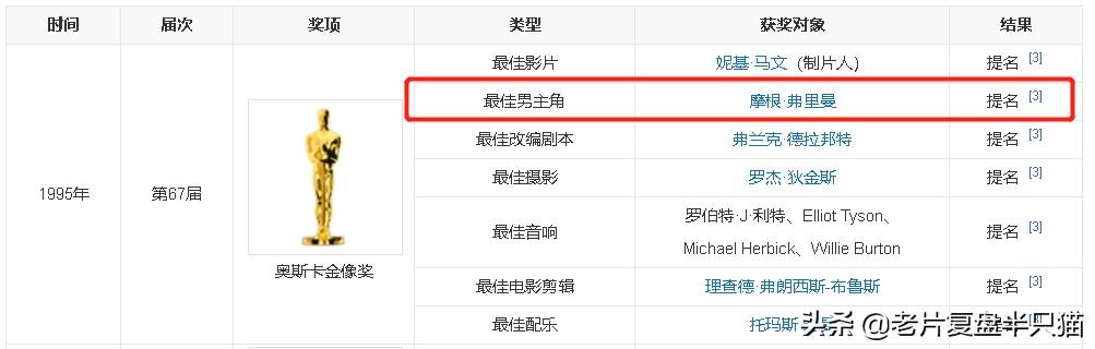 如果去查看当年的记录,你会发现那一届奥斯卡上,《肖申克的救赎》获得最佳男主角提名的演员,不是饰演安迪的提姆罗宾斯,而是饰演瑞德的摩根弗里曼。