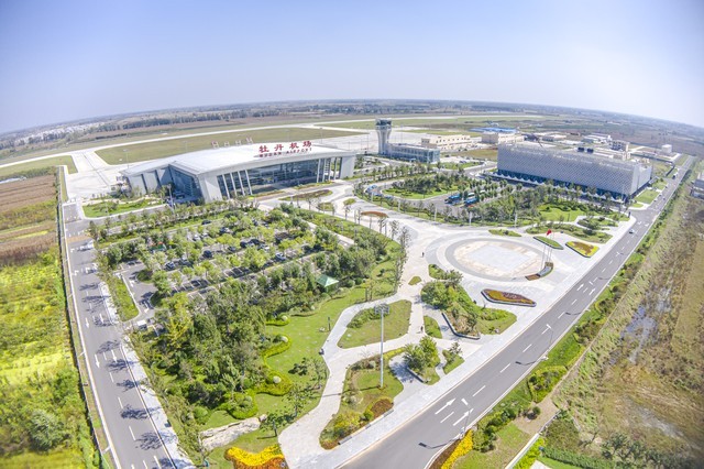 16.菏泽市:菏泽牡丹机场位于中国山东省菏泽市定陶区孟海镇西北侧,距离菏泽市中心约25公里,该机场为4C级国内支线机场。菏泽牡丹机场的航站楼面积为10916平方米,设有4座登机廊桥,民航站坪设有9个C类机位。菏泽牡丹机场于2021年4月2日正式通航,首航由山东航空执飞菏泽至西安的航班。目前,菏泽牡丹机场已开通了15条航线。未来,菏泽市还计划按照4E级标准推进牡丹机场的二期建设,包括将跑道延长到3200米,航站楼扩建到4.1万平方米,停机位达到26个,以满足更大型客机的起降需求,并争取开通国际航线。
