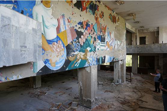 离开时,每个人必须通过检测,辐射值正常才可以离开。如果辐射过高,工作人员会帮助你清理。通过三层检查后,我们离开了这座核电站遗址,来到了位于生活区的餐厅就餐,很多游客担心这里的食物辐射值是否正常,于是纷纷拿出盖革计数器,这里的辐射值差不多和基辅一样,我们才放心使用这里的食品。