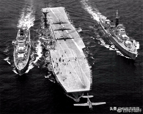 “墨尔本号”本来不叫“墨尔本号”,叫“威严号”,是英国海军的护航航母。在二战中的1943年开始建造,1945年2月下水,这个时候距离德国投降只有两个多月了,“威严号”英雄无用武之地了。英国人一看,为了对付德国人的潜艇,我造了这么多船,现在不打仗了,我也养不起了,能卖就卖了吧。这里提一句,“威严号”属于护航航母,护航航母,就是为了大西洋航线上的商船队提供护航的航母,它们主要搭载少量飞机,用于对付德国的潜艇,所以“威严号”吨位很小,只有1万4千吨,满载排水量勉强达到2万吨。