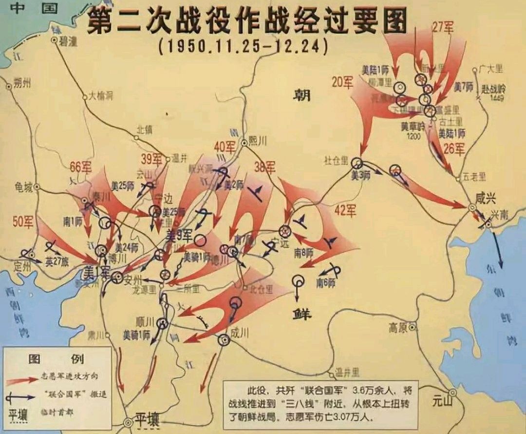 而这样的部署也给了志愿军一个致命机会:三路兵力拉得太宽,支援困难,尤其越向北越拉长防线,后备力量薄弱,一旦前方崩塌一角,那可就是连环倒。