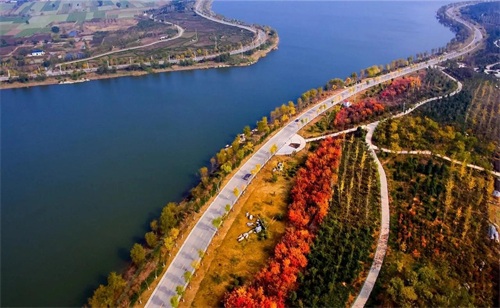 金平湖风景区,位于金乡县高河街道,地处金乡县城东部。景区内植被多样,水系丰富,自然风光美不胜收,秋季层林翠染,湖光潋滟,绘就了一幅浓墨重彩的自然风光画卷。