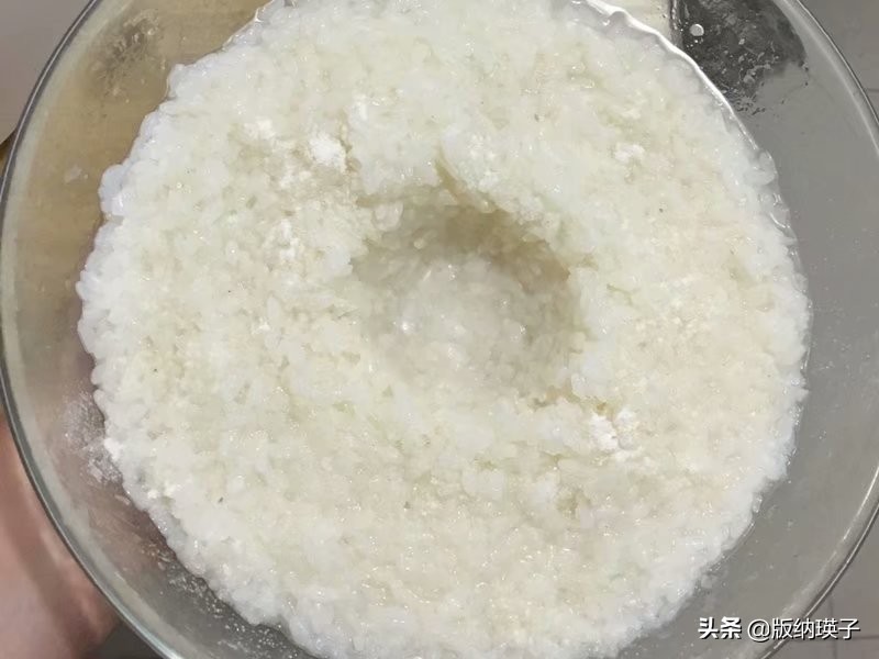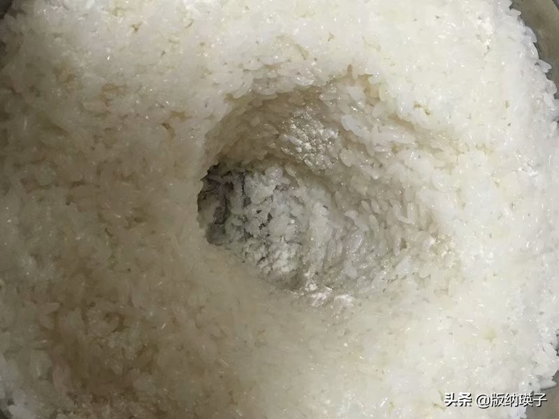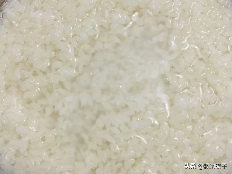 步骤一: 泡糯米(泡多少看你具体需求),泡4-6小时,如果天气热,最好中途换下水,不然米会泡坏了。手捻一下米粒,能捻成粉末就说明泡好了。