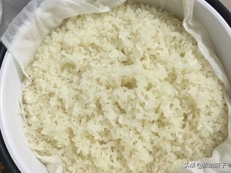 第一点:就是放糯米的容器一定不能有油水,不然的话在谈话的过程中就特别容易长黑毛。酒酿的主要食材就是糯米,我们首先要把糯米浸泡一个晚上,先用清水洗干净以后再注入可以没过它的清水,然后放置一夜,这样子的话它就会吸收足够的水分。接着我们要把多余的水倒出来,然后把糯米控干净,等水空了以后就可以上锅蒸了,要采用隔水炖的方法,大火蒸半个小时左右。蒸熟了以后要把它放在一个完全干净的盆里。